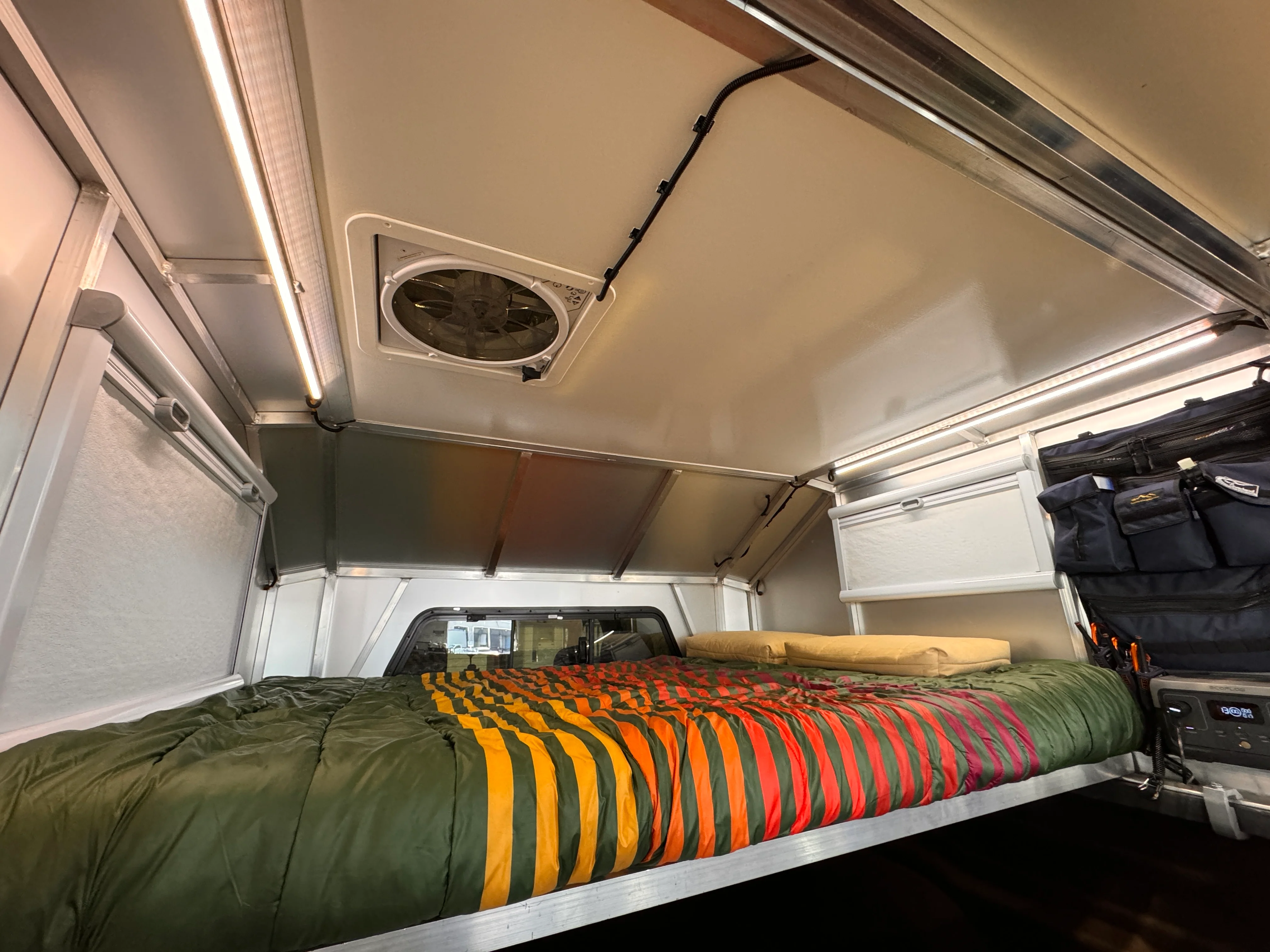 LED lighting pre-installed and routed through the camper. Orange light to keep bugs away and for night vision. Bright white light for full visibility inside the camper and at the tailgate. Control switch that is fully dimmable. IP68 waterproof & dust proof. 12V power plug with very low power draw. Nice diffused light. Good looks.